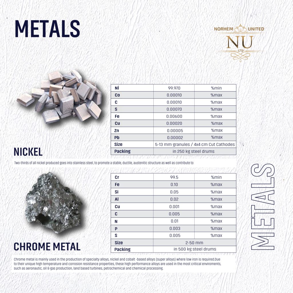 • stainless and special steel’s raw materials such as Ni, Sn, FeNi, Noble Ferroalloys, Mn